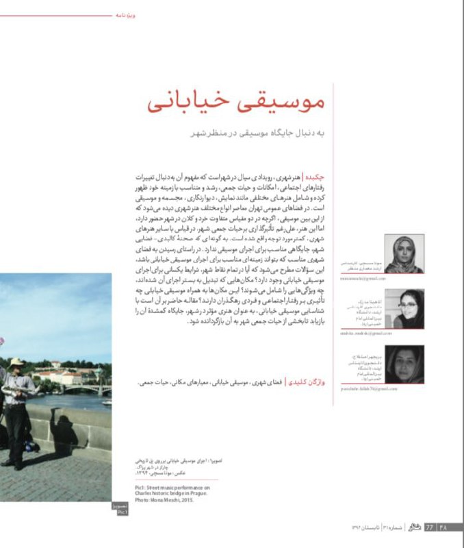 موسیقی خیابانی؛ به دنبال جایگاه موسیقی در منظر شهری مونا مسچی؛آناهیتا مدرک؛پریچهر اصلفلاح #مقاله https://t.me/joinch… 📄موسیقی خیابانی؛ به دنبال جایگاه موسیقی در منظر شهری ✍️ مونا مسچی؛آناهیتا مدرک؛پریچهر اصلفلاح📌 #مقاله 👇📍 📍 https://t.me/joinchat/AAAAAEFQE05LLyfOQR6O7A انجمن علمی-دانشجویی شهرسازی دانشگاه مازندران دیدگاه خود را بنویسید لغو پاسخنشانی ایمیل شما منتشر نخواهد شد. بخشهای موردنیاز علامتگذاری شدهاند *اینجا بنویسید… نام* ایمیل* وبگاه ذخیره نام، ایمیل و وبسایت من در مرورگر برای زمانی که دوباره دیدگاهی مینویسم.