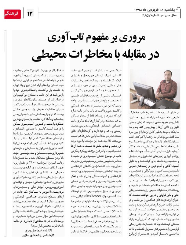 🔹مروری بر مفهوم تاب آوری در مقابله با مخاطرات محیطی