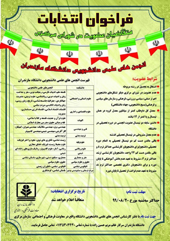 فراخوان عضویت در شورای مرکزی انجمنهای علمی دانشگاه مازندران علاقهمندان به ثبت نام برای شورای مرکزی انجمن علمی شهرساز… 📌 فراخوان عضویت در شورای مرکزی انجمنهای علمی دانشگاه مازندران 🔶 علاقهمندان به ثبت نام برای شورای مرکزی انجمن علمی شهرسازی باید واجد شرایط ذکر شده باشند.⏰ مهلت ثبت نام: ۲۰ آبان ۱۳۹۹📝ثبتنام و اطلاعات بیشتر در آیدی@UPD_UMZ@anjoman_shahrsazi_umz انجمن علمی-دانشجویی شهرسازی دانشگاه مازندران دیدگاه خود را بنویسید لغو پاسخنشانی ایمیل شما منتشر نخواهد شد. بخشهای موردنیاز علامتگذاری شدهاند *اینجا بنویسید… نام* ایمیل* وبگاه ذخیره نام، ایمیل و وبسایت من در مرورگر برای زمانی که دوباره دیدگاهی مینویسم.