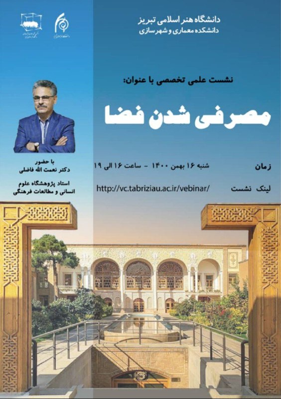 نشست علمی تخصصی عنوان سخنرانی:مصرفی شدن فضا«دکتر نعمتالله فاضلی»استاد پژوهشگاه علوم انسانی و مطالعات فرهنگیشنبه، ۱۶ بهم… نشست علمی تخصصی عنوان سخنرانی:🔸️مصرفی شدن فضا🔸️«دکتر نعمتالله فاضلی»استاد پژوهشگاه علوم انسانی و مطالعات فرهنگیشنبه، ۱۶ بهمنماه ۱۴۰۰ساعت ۱۶:٠٠ تا ۱۹:٠٠لینک جلسه:http://vc.tabriziau.ac.ir/vebinar/ کانال انجمن علمی دانشکده معماری و شهرسازی دانشگاه هنر اسلامی تبریز دیدگاه خود را بنویسید لغو پاسخنشانی ایمیل شما منتشر نخواهد شد. بخشهای موردنیاز علامتگذاری شدهاند *اینجا بنویسید… نام* ایمیل* وبگاه ذخیره نام، ایمیل و وبسایت من در مرورگر برای زمانی که دوباره دیدگاهی مینویسم.