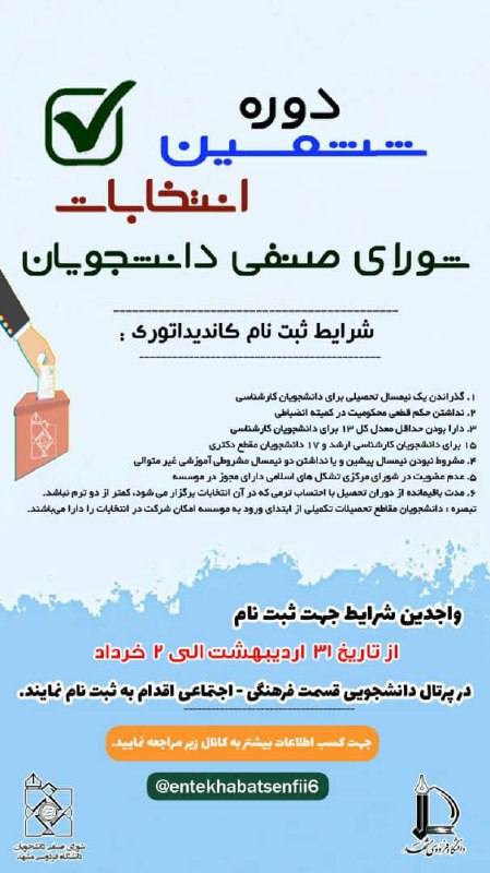 💢 ششمین دوره انتخابات شورای صنفی دانشجویان