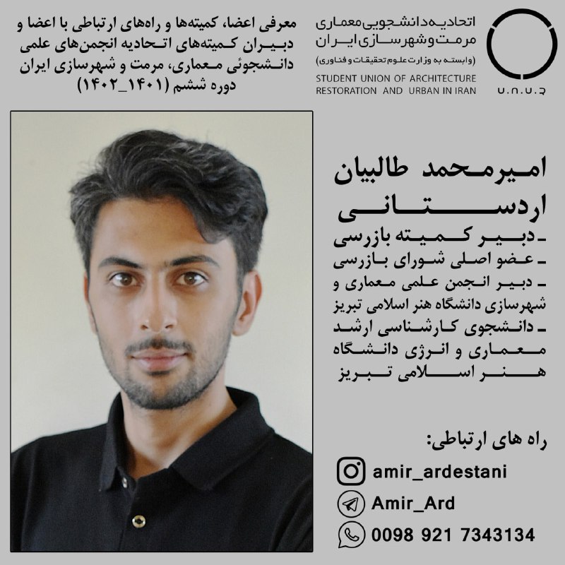 ـ دبـیـر انـجمن عـلمی مـعماری و شهرسازی دانشگاه هنر اسلامی تبریز
