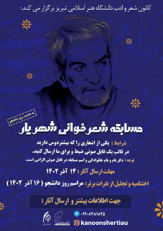#بمناسبت_روز_دانشجو کانون شعر و ادب دانشگاه هنر اسلامی تبریزمسابقه شعرخوانی شهریارکسب اطلاعات بیشتر:@kanooonsher_tau.@SA… #بمناسبت_روز_دانشجو💠 کانون شعر و ادب دانشگاه هنر اسلامی تبریز📍مسابقه شعرخوانی شهریار▫️کسب اطلاعات بیشتر:@kanooonsher_tau.@SA_TIAU کانال انجمن علمی دانشکده معماری و شهرسازی دانشگاه هنر اسلامی تبریز دیدگاه خود را بنویسید لغو پاسخنشانی ایمیل شما منتشر نخواهد شد. بخشهای موردنیاز علامتگذاری شدهاند *اینجا بنویسید… نام* ایمیل* وبگاه ذخیره نام، ایمیل و وبسایت من در مرورگر برای زمانی که دوباره دیدگاهی مینویسم.