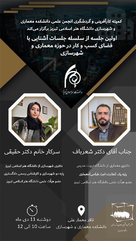 💠 کمیته کارآفرینی و گردشگری انجمن علمی دانشکده معماری و شهرسازی دانشگاه هنر اسلامی تبریز برگزار میکند