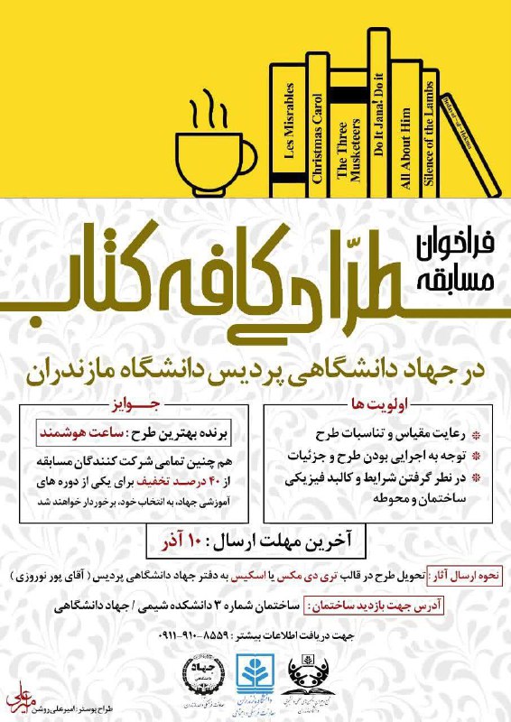 ✒️فراخوان مسابقه طراحی کافه کتاب در جهاد دانشگاهی پردیس دانشگاه مازندران