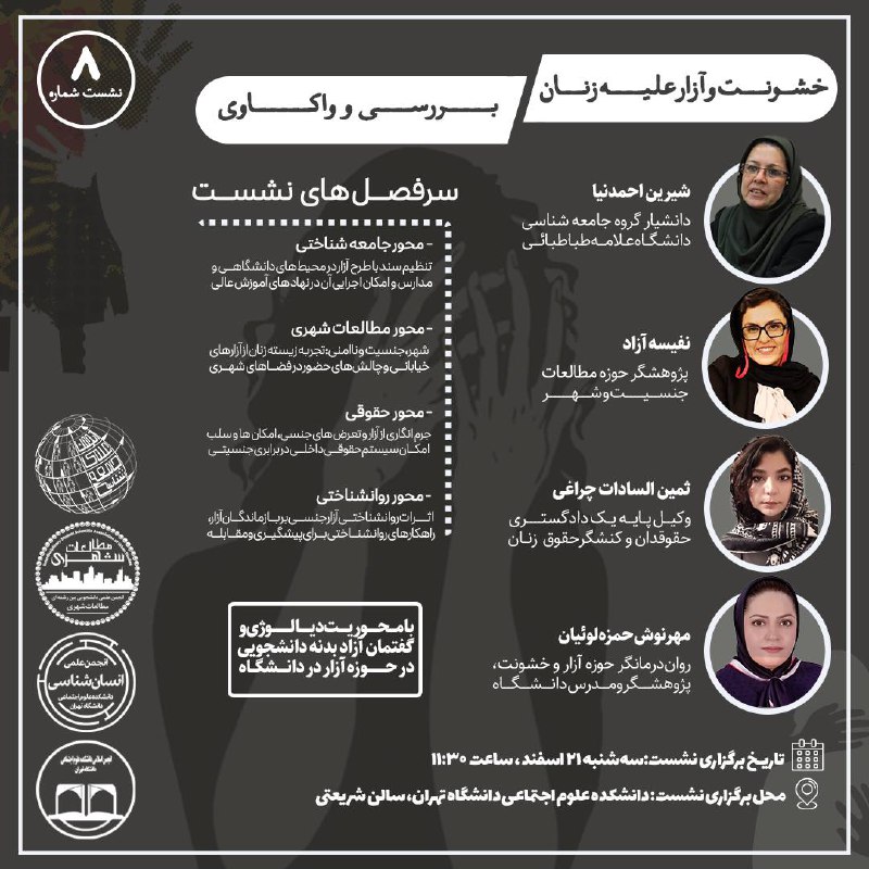 💢 نشست حضوری «خشونت و آزار علیه زنان: بررسی و واکاوی»