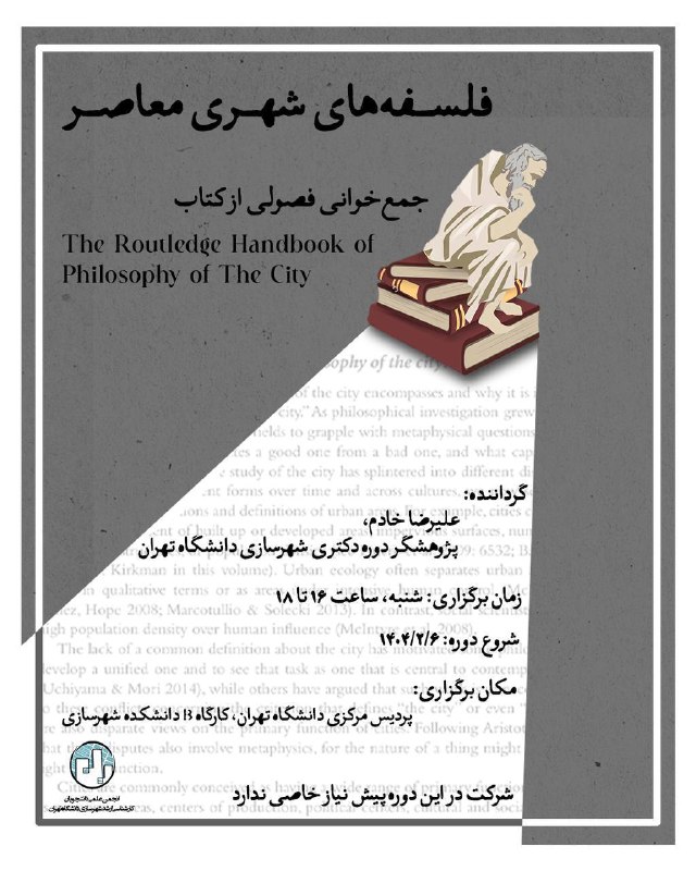 👨🏫 گرداننده: علیرضا خادم (پژوهشگر دوره دکتری شهرسازی دانشگاه تهران)