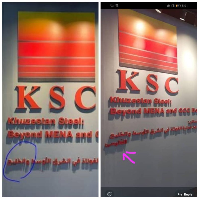حذف نام فارس در کنار واژه خلیج توسط روابط عمومی شرکت فولاد خوزستان، در غرفه این شرکت در نمایشگاه ایران اکسپو در تهران؛ و سپس اضافه کردن کلمه فارس به طرز ناشیانهای پس اعتراض مردم.
