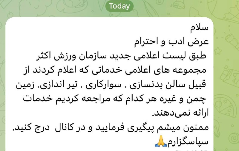 لطفاً مسئولان محترم سازمان ورزش، قبل از اعلام لیست، از فعال بودن مجموعه‌ها مطمئن بشن تا وقت و انگیزه‌ی کارکنان تلف نشه.