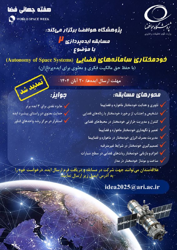 رویداد ایده پردازی خودمختاری سامانه های فضایی، اطلاعات بیشتر در پوستر رویداد موجود می باشد…. رویداد ایده پردازی خودمختاری سامانه های فضایی، اطلاعات بیشتر در پوستر رویداد موجود می باشد. باشگاه فناوران اطلاعات مکانی دیدگاه خود را بنویسید لغو پاسخنشانی ایمیل شما منتشر نخواهد شد. بخشهای موردنیاز علامتگذاری شدهاند *اینجا بنویسید… نام* ایمیل* وبگاه ذخیره نام، ایمیل و وبسایت من در مرورگر برای زمانی که دوباره دیدگاهی مینویسم.