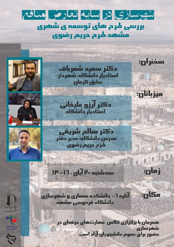 🟢 فرصتی برای گفتوگوی تخصصی دربارهی چالشها و منافع پنهان در پروژههای توسعه شهری مشهد.
