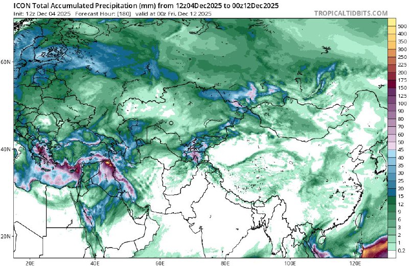 ✅ شمال عراق ( اقلیم کردستان) و غرب ایران پربارشترین نقاط روی خشکی در سرتاسر قاره آسیا طی یک هفته آینده