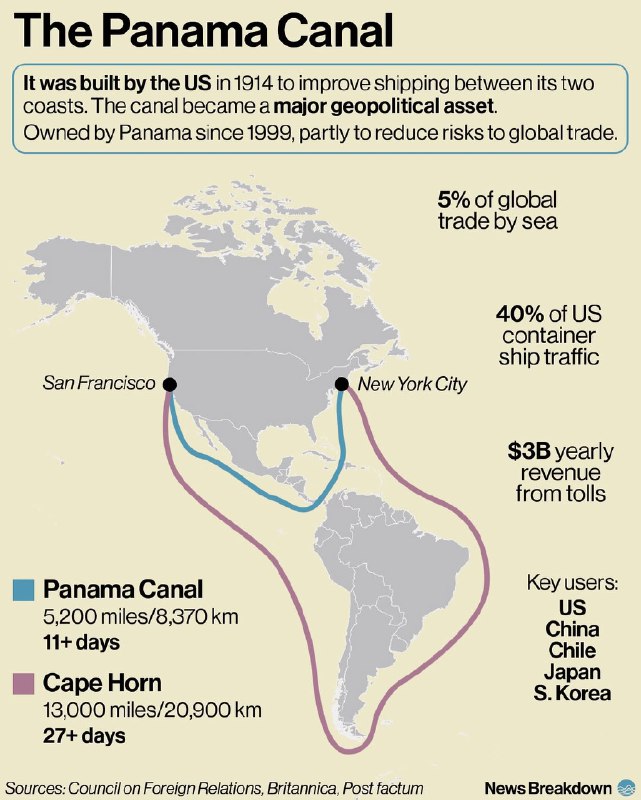 • این کانال برای توانایی ایالات متحده در تأمین نیازهای خود و جابهجایی نیروهای نظامیاش اهمیت دارد.