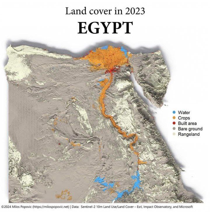درّه و دلتای نیل در کشور مصر متراکمترین جمعیت جهان را در خود جای داده است. این منطقه که فقط ۵ درصد مساحت مصر را شامل میشود، محلّ زندگی ۹۹ درصد جمعیت صد میلیون نفری این کشور است.