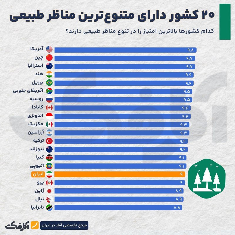 ایران در رتبه ۱۶ متنوعترین مناظر طبیعی جهان قرار گرفته است.