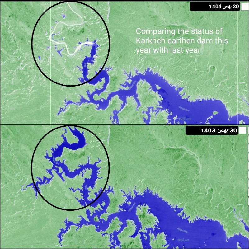🔴 وضعیت نامطلوب ذخیره آب سد کرخه امسال مقایسه با مدت زمان مشابه سال اخیر.